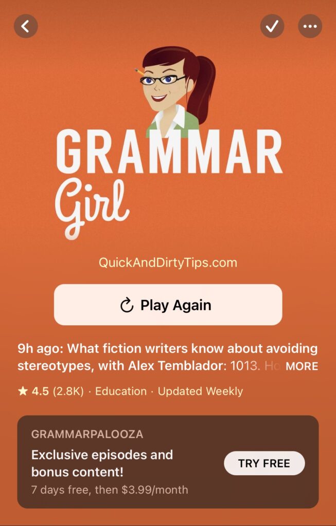 Do you want to stick to the free version of Grammar Girl? You will still get the same weekly Grammar Girl podcast content you have come to know and love. Just subscribe on your favorite podcast player and start getting the new regular episodes.